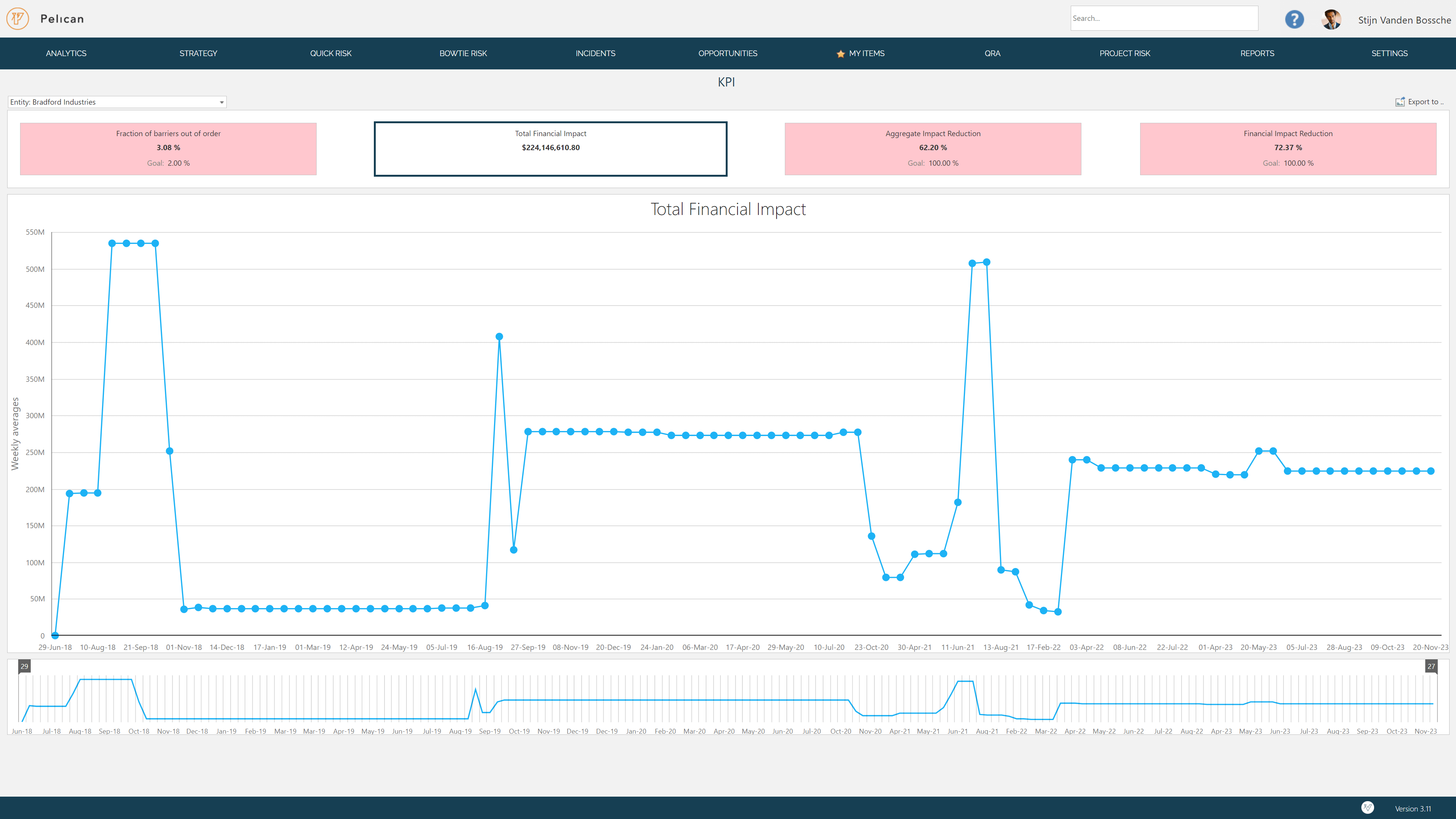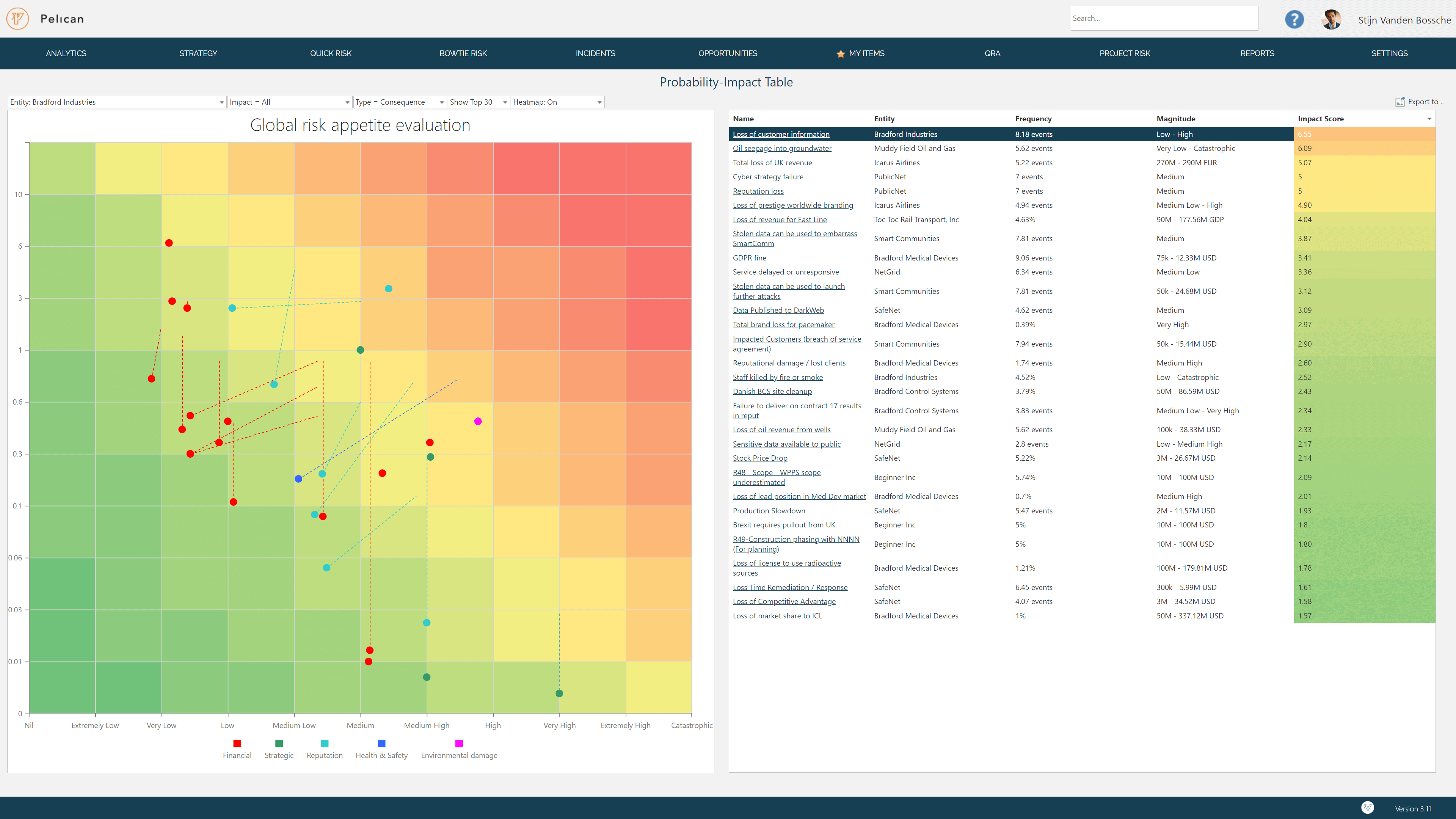 Pelican supports risk-based decision making by providing a wealth of analytical tools for evaluating the effect of risk on key business objectives. It can incorporate risk information from spreadsheet risk analysis models, project cost and schedule risk, and the Pelican risk register to provide an integrated, consistent and holistic view of risk. Using Pelican, our customers have a clear view of what risks most threaten their objectives, and where best to assign resources for the most cost-effective risk management.